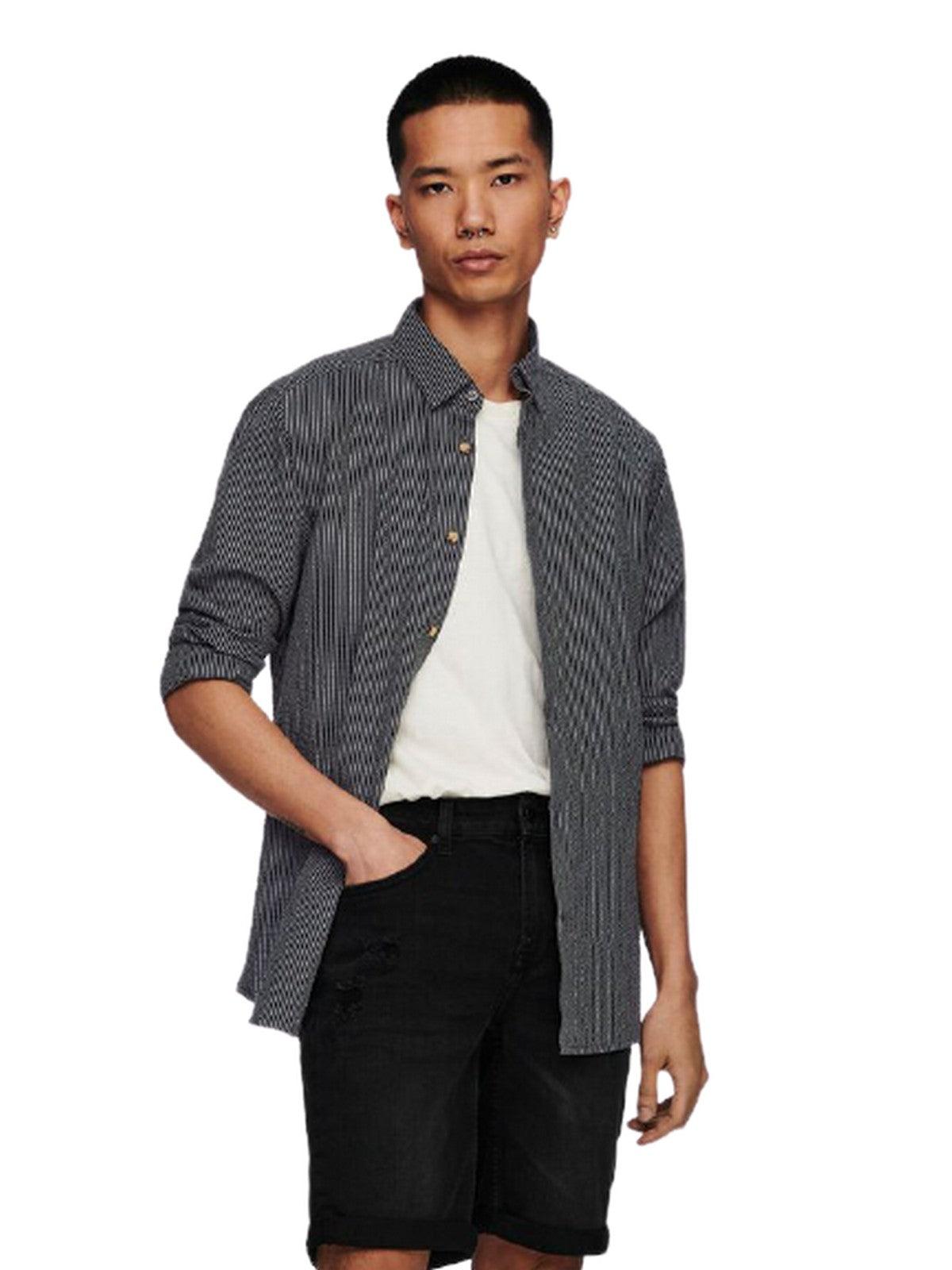 Freizeithemden für Herren Only & Sons – Onssteve Life Ls Seersucker Stripe Shirt – Blau