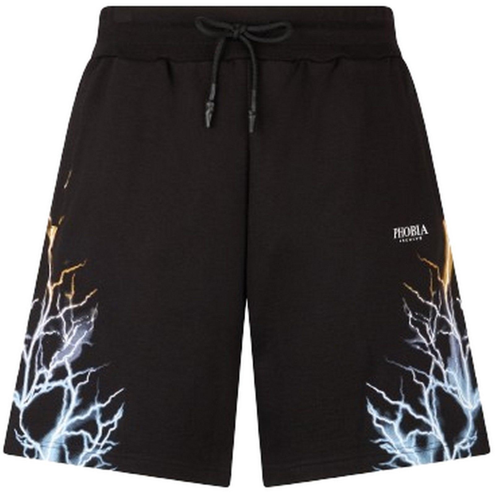 Spodenki męskie Fobia - Czarne Szorty z dwukolorowym nadrukiem błyskawicy - Czarne