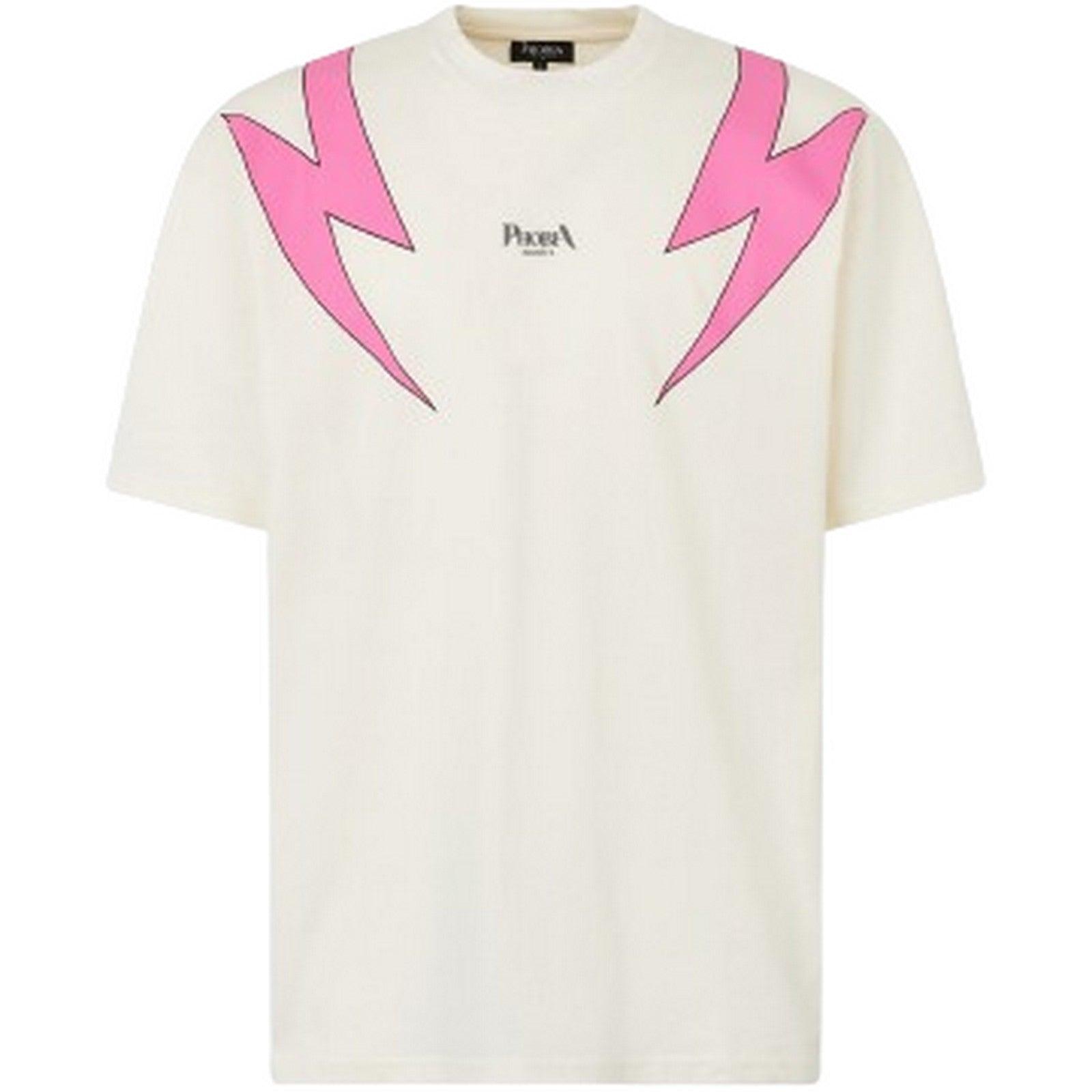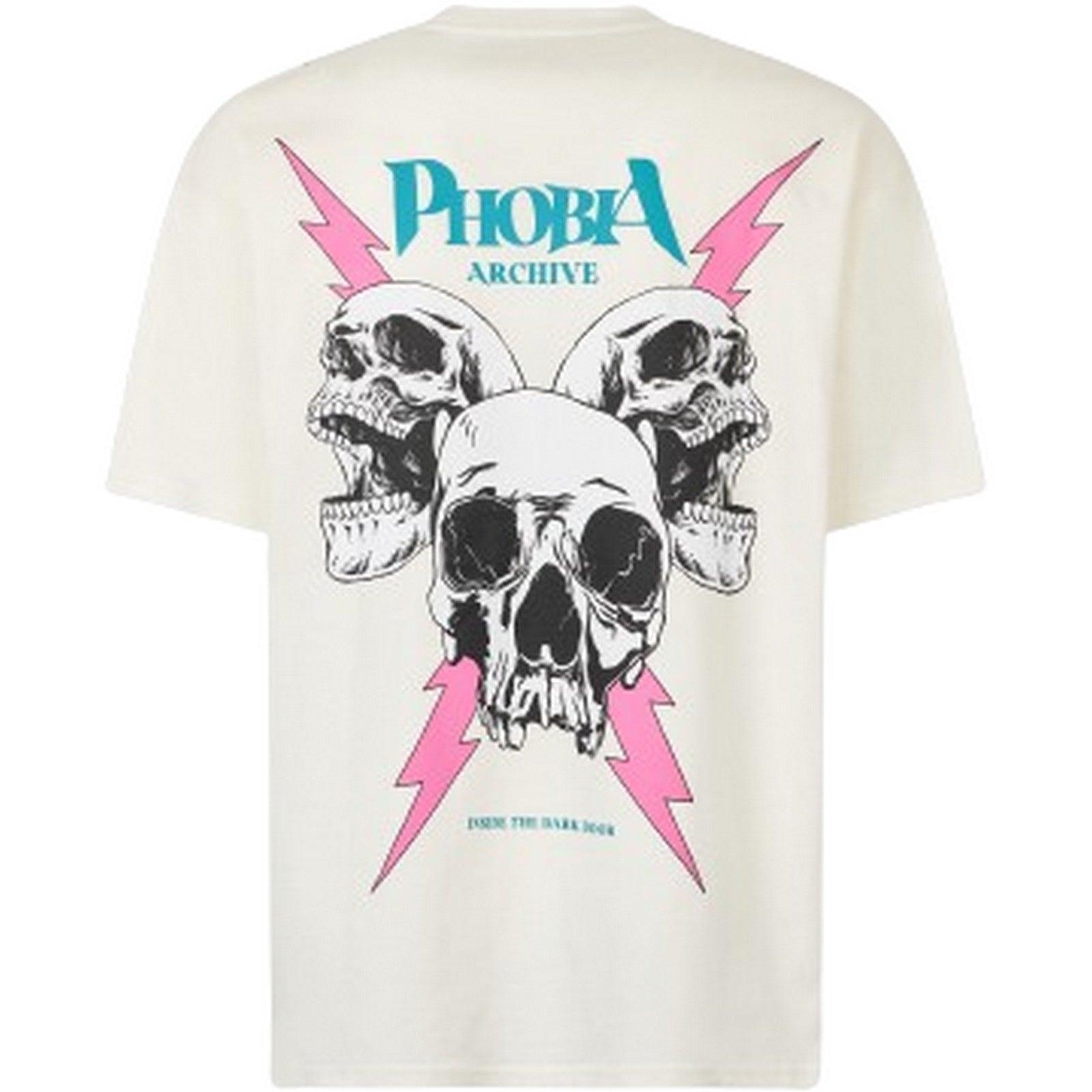 T-shirt męski Fobia - biały T-shirt z różowym nadrukiem "Screaming Skulls" - biały