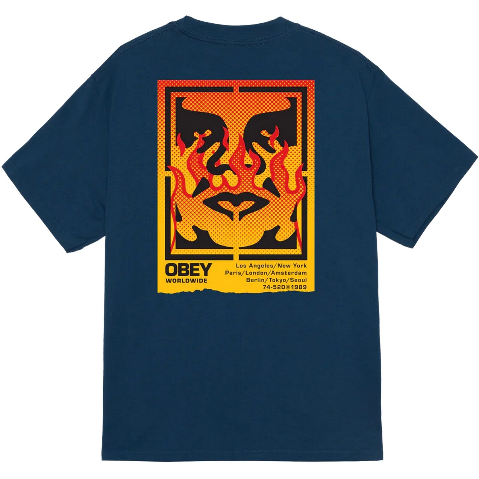 T-shirt męski Obey — Obey Icon Stencil Flame Tee — niebieski