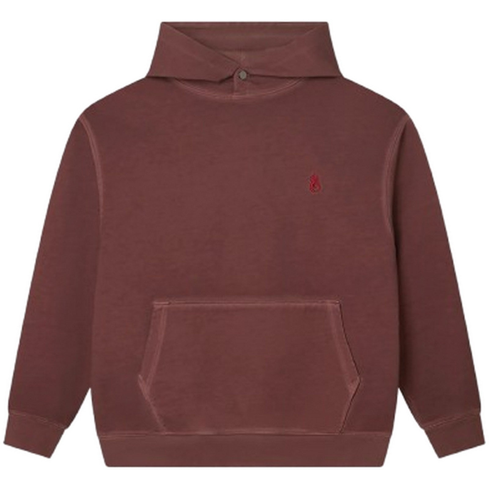 Wizja super męskich bluz z kapturem – Rdzawa bluza z haftowanym czerwonym płomieniem i nadrukiem – brązowa