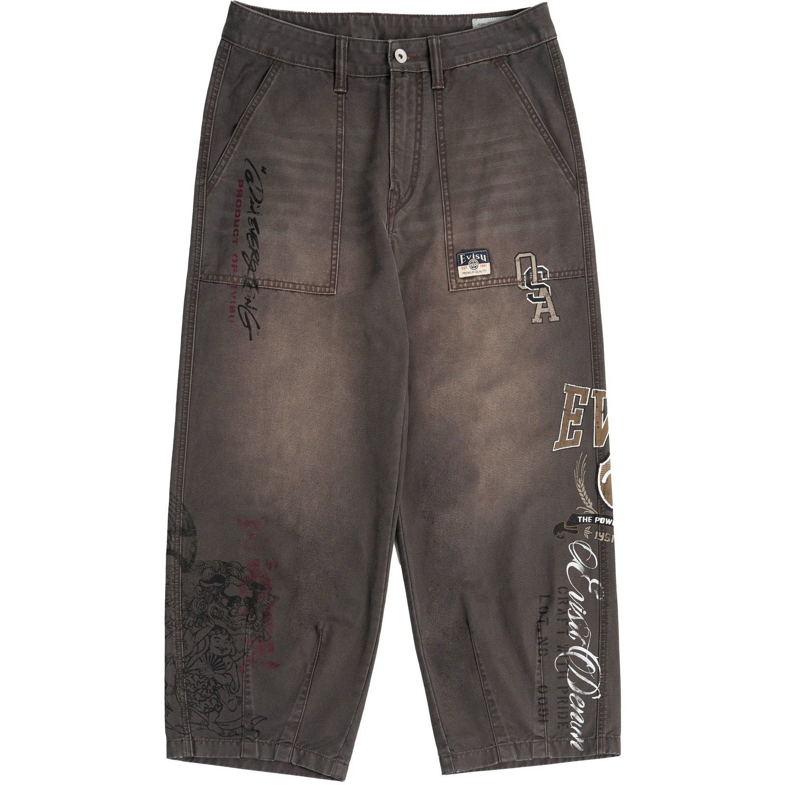 Pantaloni Uomo Evisu - Ht, Vintage Washed Woven Pants W/ Ao Print - Marrone